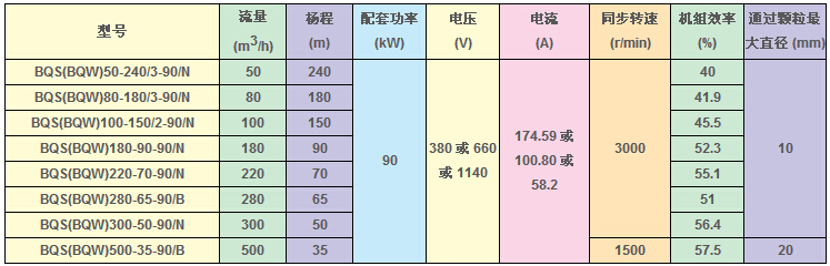 BQS(W)礦用隔爆型排污排沙潛水電泵技術(shù)參數(shù):